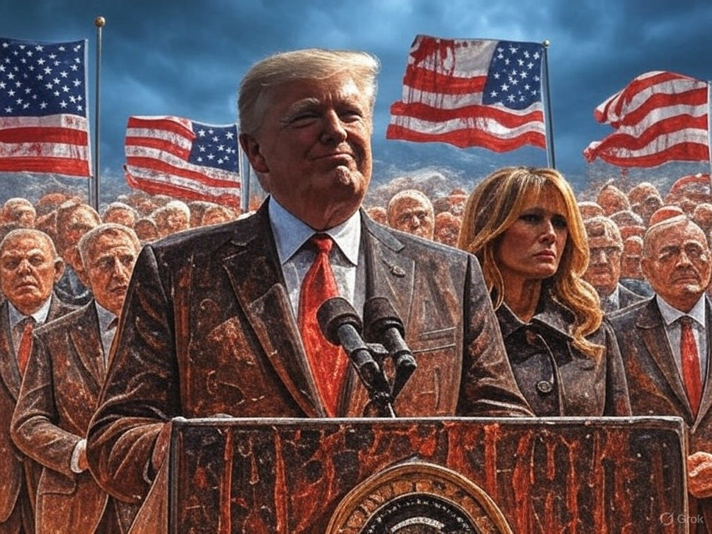 Normally, an inauguration is a festive affair—music, unity, a sense of occasion. This one had all the warmth of a hostage video. The National Mall, once packed with hopeful faces, was now a sea of grim expressions and oversized flags. And then there was the man himself: orange, loud, and seething. The world’s most bitter wedding cake topper. His body language screamed resentment like he couldn’t believe he had to work for this.