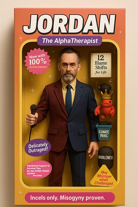 He fantasises about lobsters, screams about the WOKE, and insists climate change is a hoax, because a weather chart is Marxist propaganda by the LEFT ELITES.