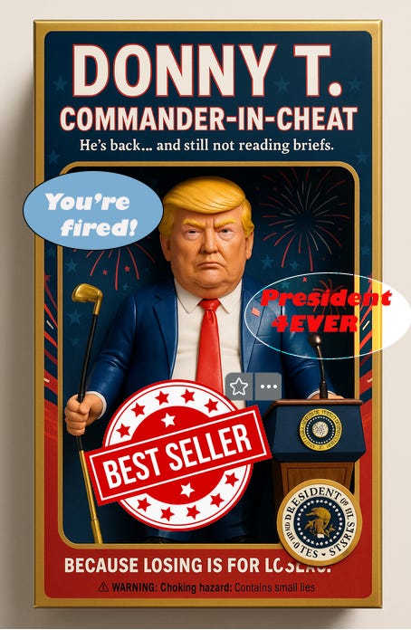 Then came the presidency: four years, 38,000 recorded lies, zero accountability. He rewrote reality with a Sharpie, flirted with fascists, and turned narcissism into national policy. Loyalty is sacred—so long as it’s to him.