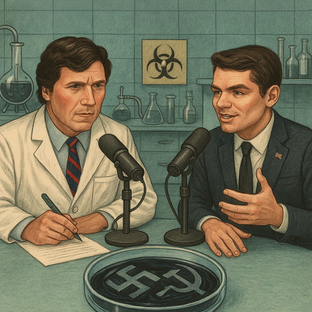 If anyone still clings to the fantasy that journalism is about truth, Tucker Carlson’s interview with Nick Fuentes should put that illusion to rest immediately. It wasn’t journalism. It wasn’t even a debate. It was a laboratory experiment — a clinical, sanitised environment where violent ideologies could be safely handled, stripped of their context, and presented not as threats, but as fascinating specimens. Carlson played the lab-coated technician, observing Fuentes’s pivot from Hitler to Stalin with the mild curiosity of a scientist noting a chemical reaction, never acknowledging the poison in the petri dish.