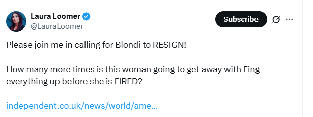 Even conspiracy evangelist Laura Loomer turned on Attorney General Pam Bondi, demanding her resignation.